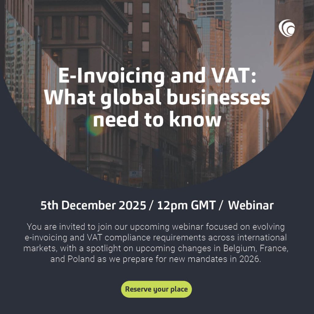 You’re invited to join our upcoming webinar focused on evolving e-invoicing and VAT compliance requirements across international markets, with a spotlight on the upcoming changes in Belgium, France, and Poland.